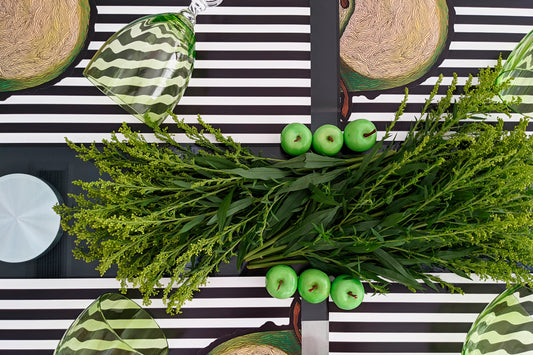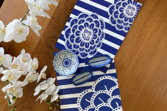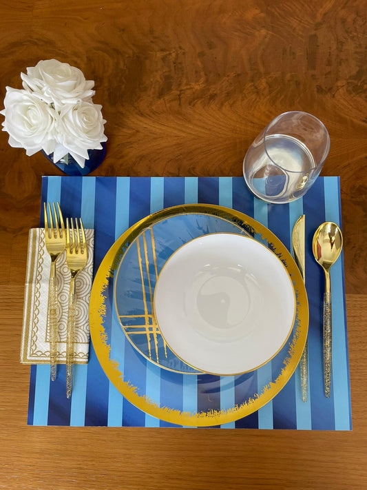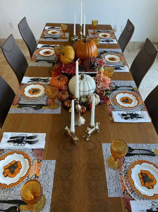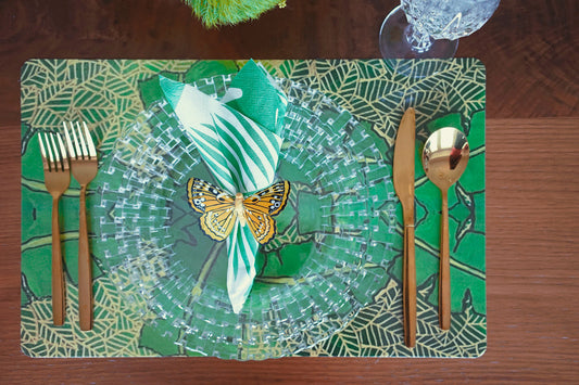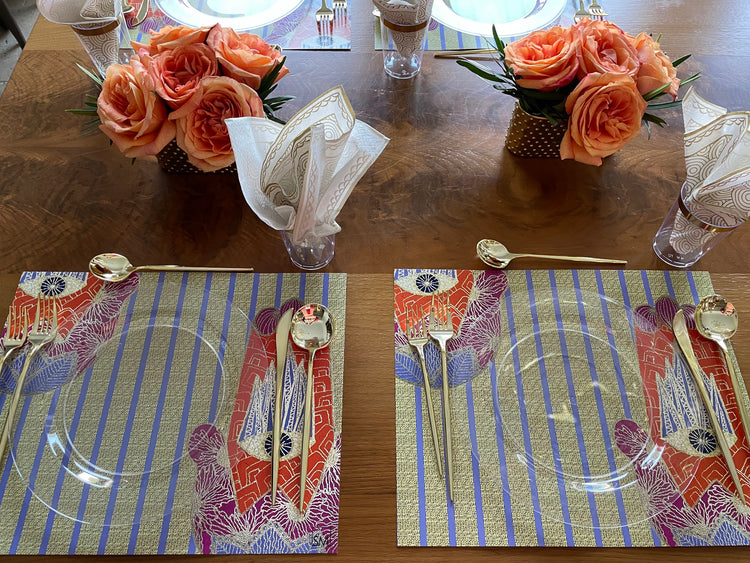 100 lb Reusable Gloss Paper Placemats that come in a pack of 12. Dress up your table with this hand painted designs and let them be the talk of the night.