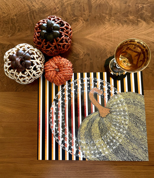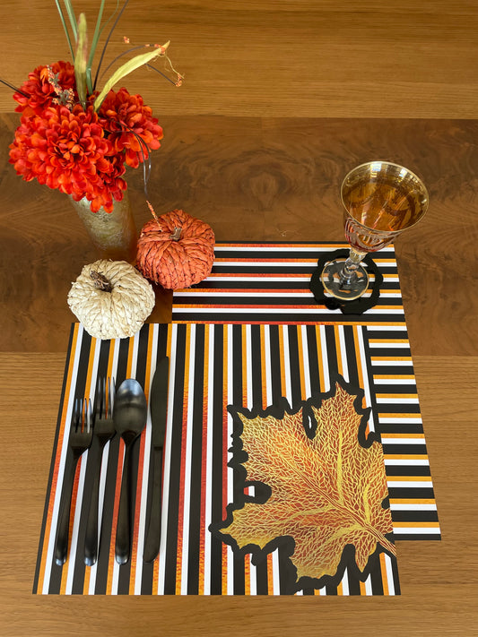 Pumpkin Vertical Lines Gloss Paper Placemats