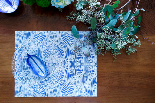 100 lb Reusable Gloss Paper Placemats that come in a pack of 12. Dress up your table with this hand painted designs and let them be the talk of the night.