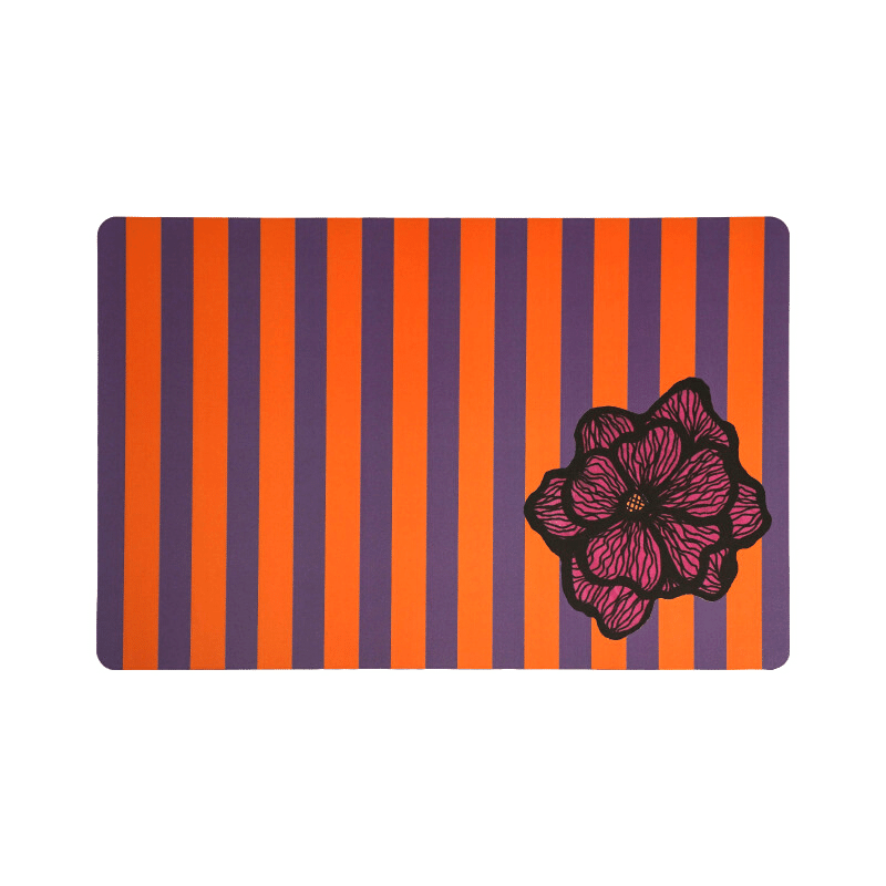 Dress your table in style with a mix of modern elements and a playful touch. This stripes and flower placemat can go from the kitchen classic to your holiday staple. Fun design and convenience in one.