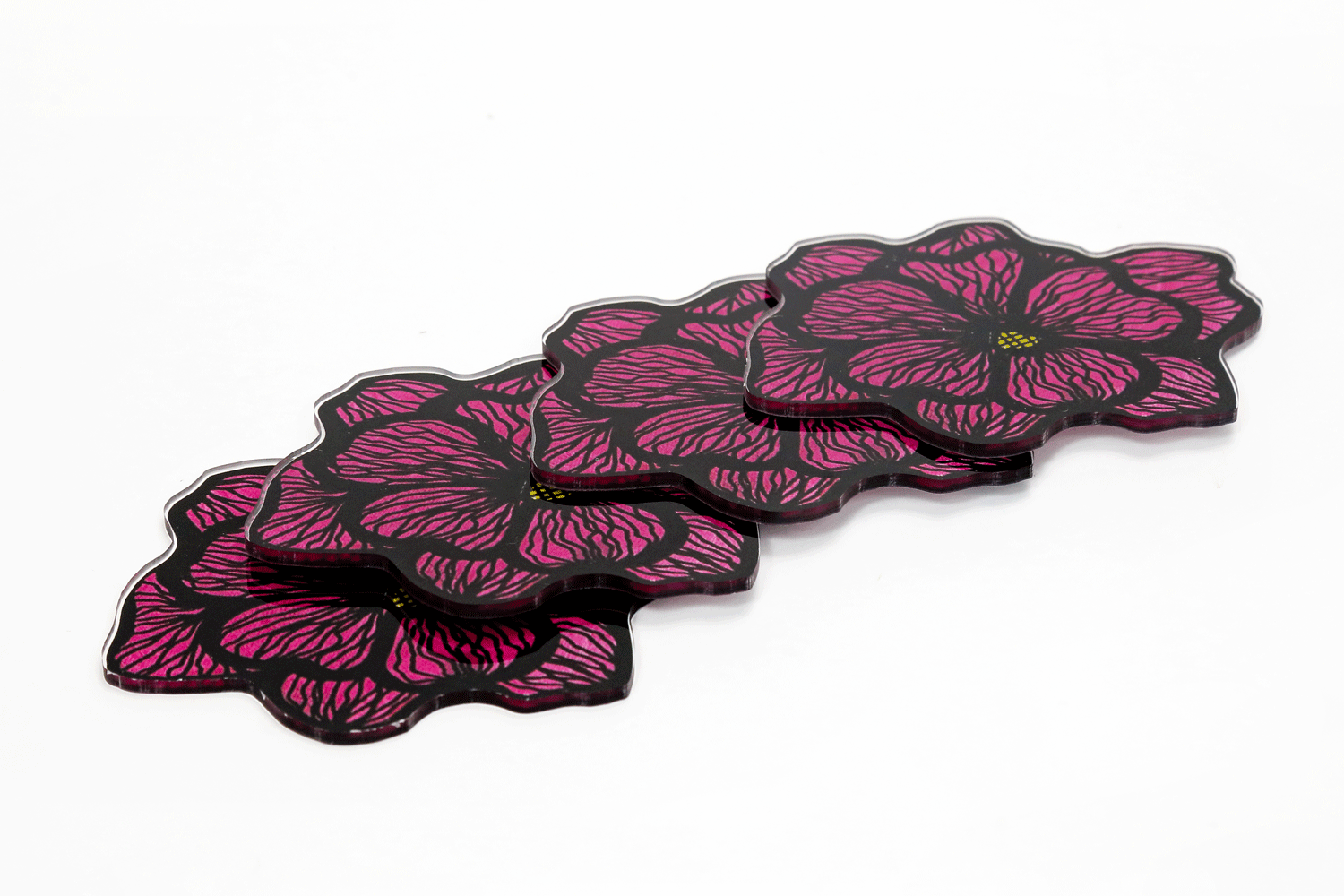 Our finest fucsia flower acrylic coasters laser cut are best selling in the industry. For your table decorations, gifts and wedding favors, it is perfect for your event.