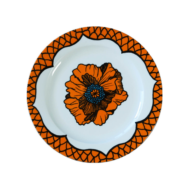 Add a touch of class to your dinner table with this porcelain painted orange flower plates. These gorgeous Porcelain Dinner Plates by Sarita Mishaan feature a vibrant floral pattern in orange and white. These handmade dinner plates are a combination of beauty and functionality.