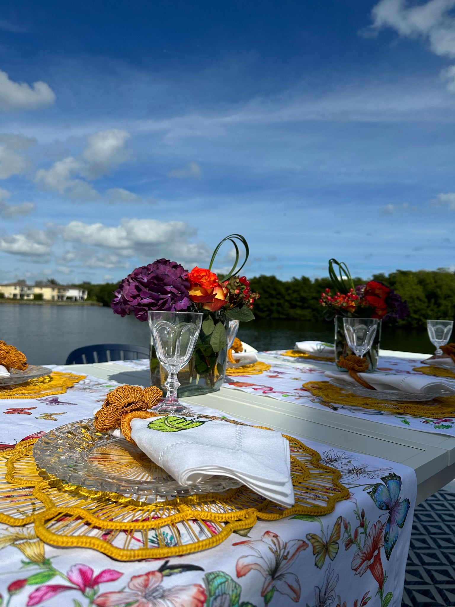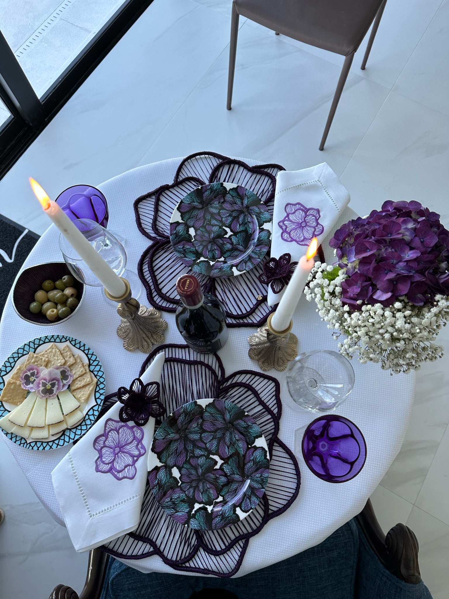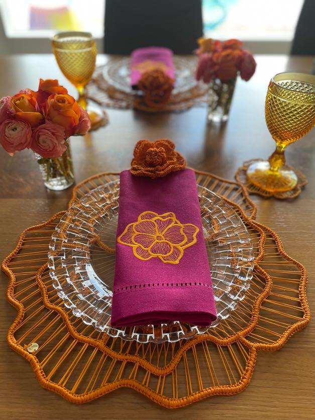 A nod to classic Colombian Artisan craft, our woven collection features a unique flower design created by the artist and depicted by the artisans. Each item is handwoven by local artisans in Colombia using traditional palm thread and colors that are both elegant, practical and depict the essence of the artisans. Set to enliven any table, this unique tablewear set makes the perfect base for any eclectic combination of plates and glassware. These will match any of your table linens beautifully.